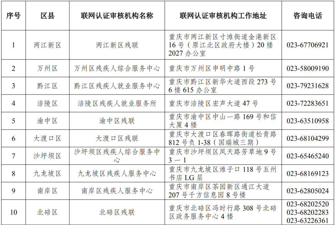 八、各区县(自治县)残疾人按比例就业情况联网认证窗口地址