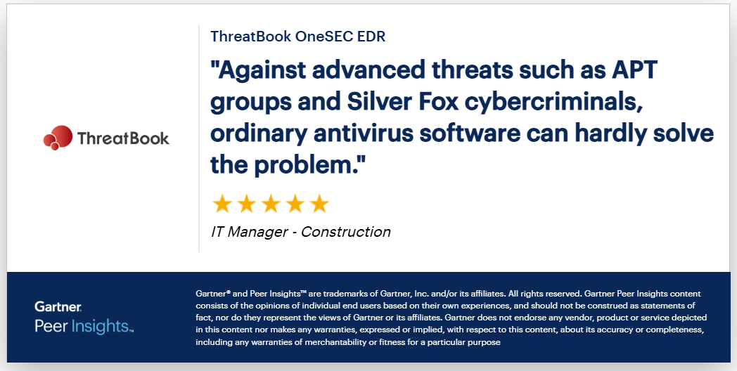 本次报告中,微步收获高科技、服务、金融、建筑、零售等多行业大企业用户的高度认可,在产品能力、部署体验、支持体验等几大核心维度均斩获满分好评。对微步而言,这些评价充分印证了微步在国内终端安全领域的行业领先实力与标杆地位。多数用户评价显示,微步的高级威胁检测响应能力出色,能有效抵御APT组织、新型流行黑产等威胁,且SaaS化的部署模式高效、便捷,符合国际主流技术路线,现摘取部分评价如下: