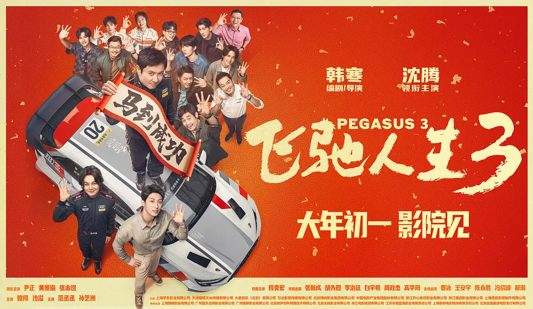 《飞驰人生3》携荣光归来,韩寒与沈腾黄金组合再携手,沈腾、尹正、黄景瑜等原班人马集结,续写“巴音布鲁克之王”张驰的热血传奇。