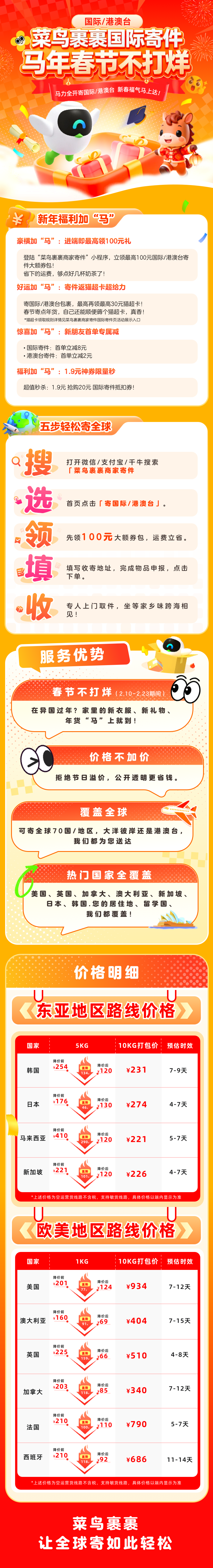 菜鸟裹裹国际寄件春节不打烊不加价!