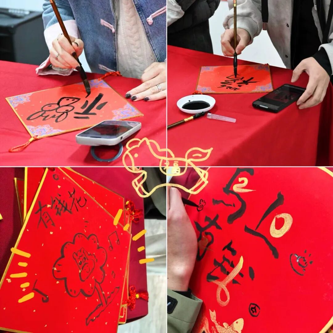 笔墨纸砚早已准备就绪,大家饱蘸浓墨,在红纸上挥毫泼墨,一笔一划间,写下的不仅是对新年的美好祈愿,更是对工作和生活的无限热忱。一时间,各式各样的“福”字跃然纸上,有的苍劲有力,有的灵动活泼,大家将写好的“福”字高高举起,定格下这福气满满、团结一心的美好瞬间。