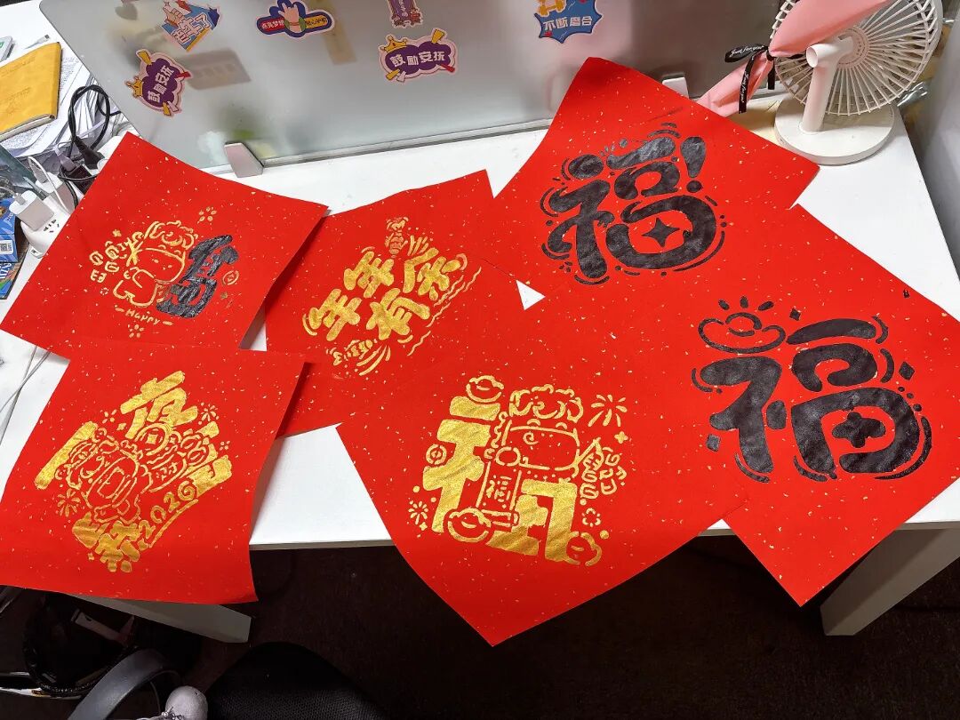 武汉&北京的办公室里,大家排着队,争先恐后留下自己的“福”迹。一张张拓印,虽然图案不同,却承载着相同的美好祝愿——把传统“福”运带到工位,也带回家!