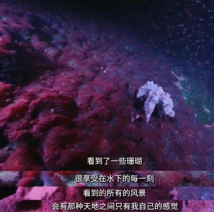 下水之后,王一博无法和教练说话,周围也是一片黑暗。唯一提供指引的,只有自己头顶的一盏灯,一个要找到海底发光生物的决心。