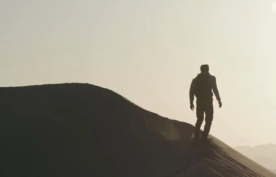 在日出前,他终于登上“沙漠珠峰”的峰顶,看着广袤无垠的沙海: