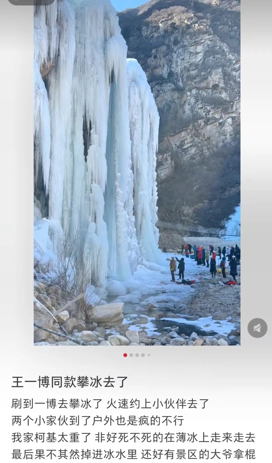 有网友去实际打卡了爱豆同款冰攀地,感慨难度太大了,非专业人士一定不要贸然尝试。