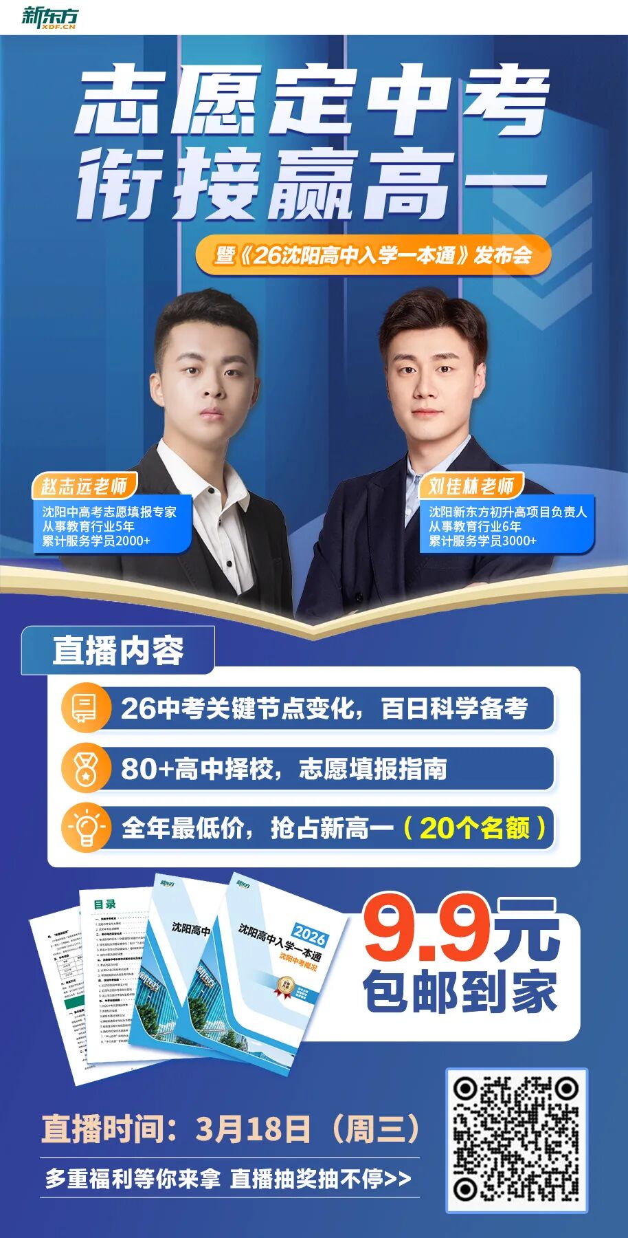 中考生必看|沈阳新东方《高中入学一本通》发布会直播来袭!解锁中考新政,精准填报志愿