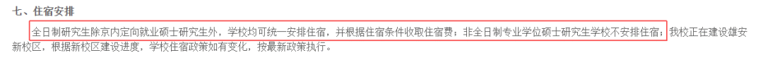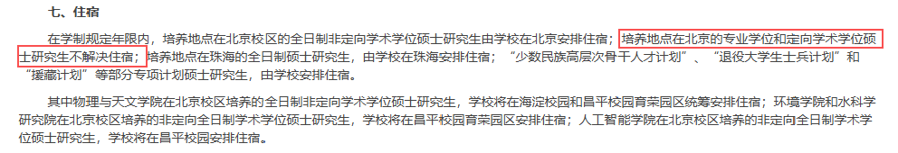 培养地点在北京的专业学位硕士研究生不解决住宿;定向就业的北京地区硕士研究生不解决住宿。