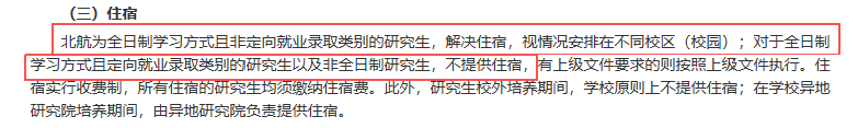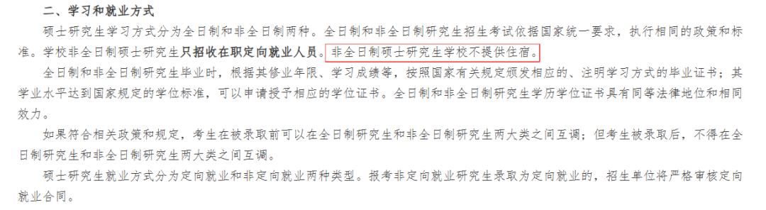 全日制定向就业及非全日制专业学位研究生不安排住宿。