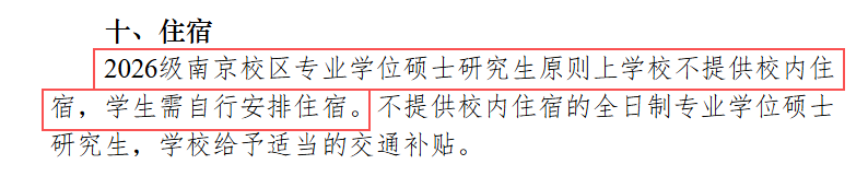 2026级南京校区专业学位硕士研究生原则上学校不提供校内住宿,学生需自行安排住宿。