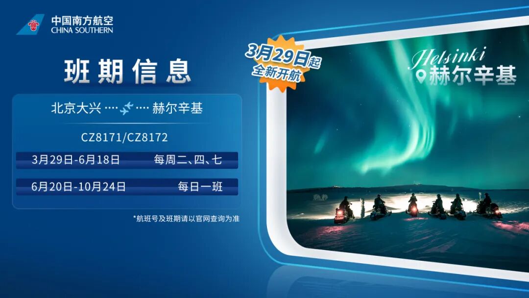 南航沈阳—北京大兴—赫尔辛基,一张机票,全程无忧;24小时内衔接无需重复提取托运行李,一票到底;中转更省时、更省心,轻松通达芬兰及欧洲多地。