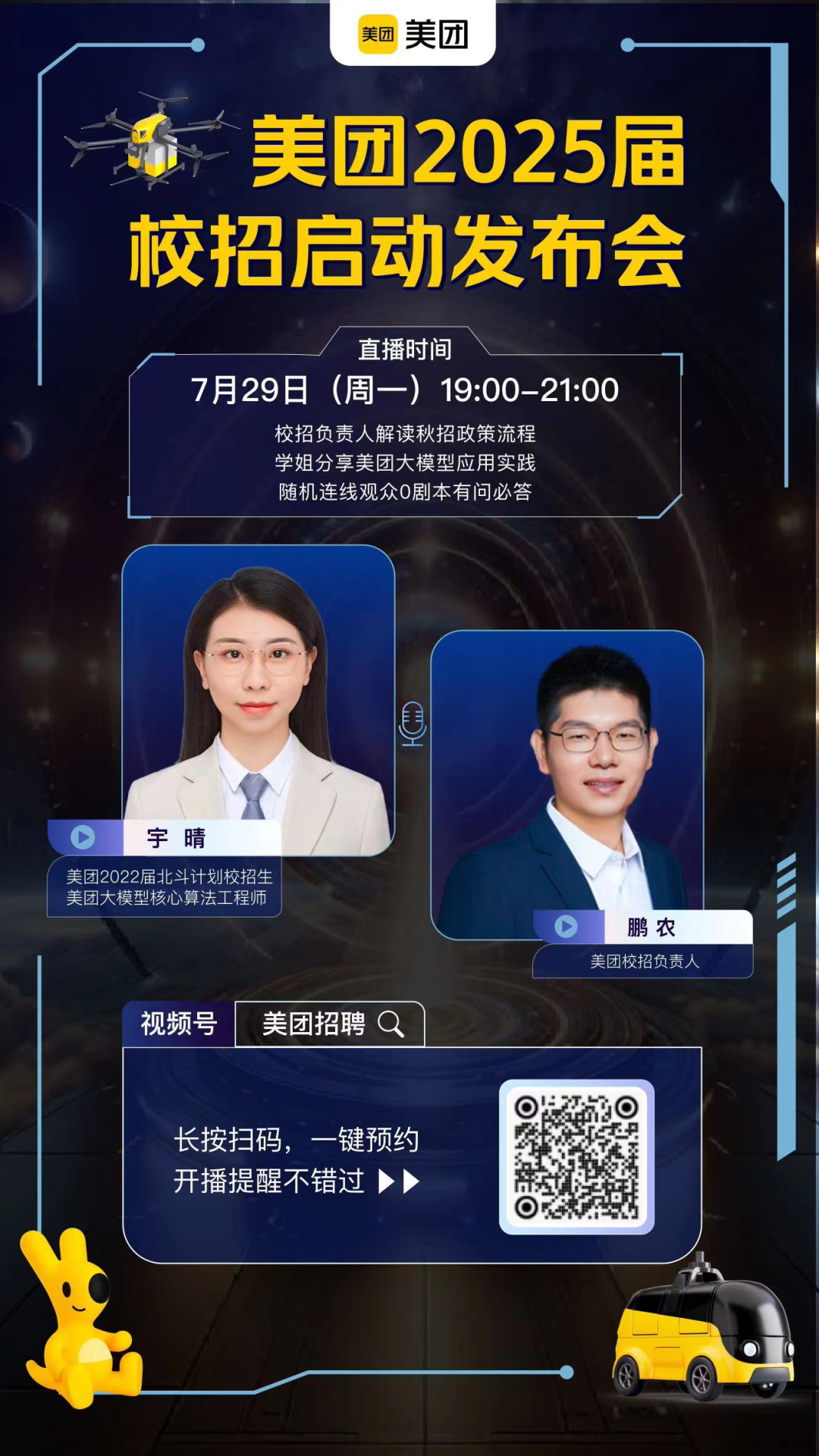美团2025届校招网申已开启!有疑问?锁定今晚19:00直播
