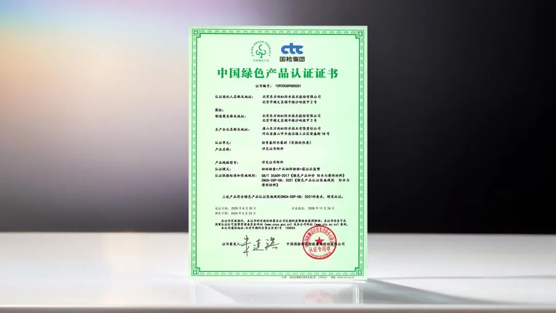 在低碳技术与绿色产品研发应用方面,东方雨虹在科研平台、产业基础及资源优势等综合实力的助推下,紧密围绕低碳环保、提质降耗、协同增效等方面重点发力,并由此取得一系列显著成果。以防水类产品为例,截至目前,包括有胎改性沥青卷材、无胎改性沥青卷材、水性防水涂料、高固含量型防水涂料、高分子卷材在内的五大防水品类均有产品获得中国绿色产品认证。