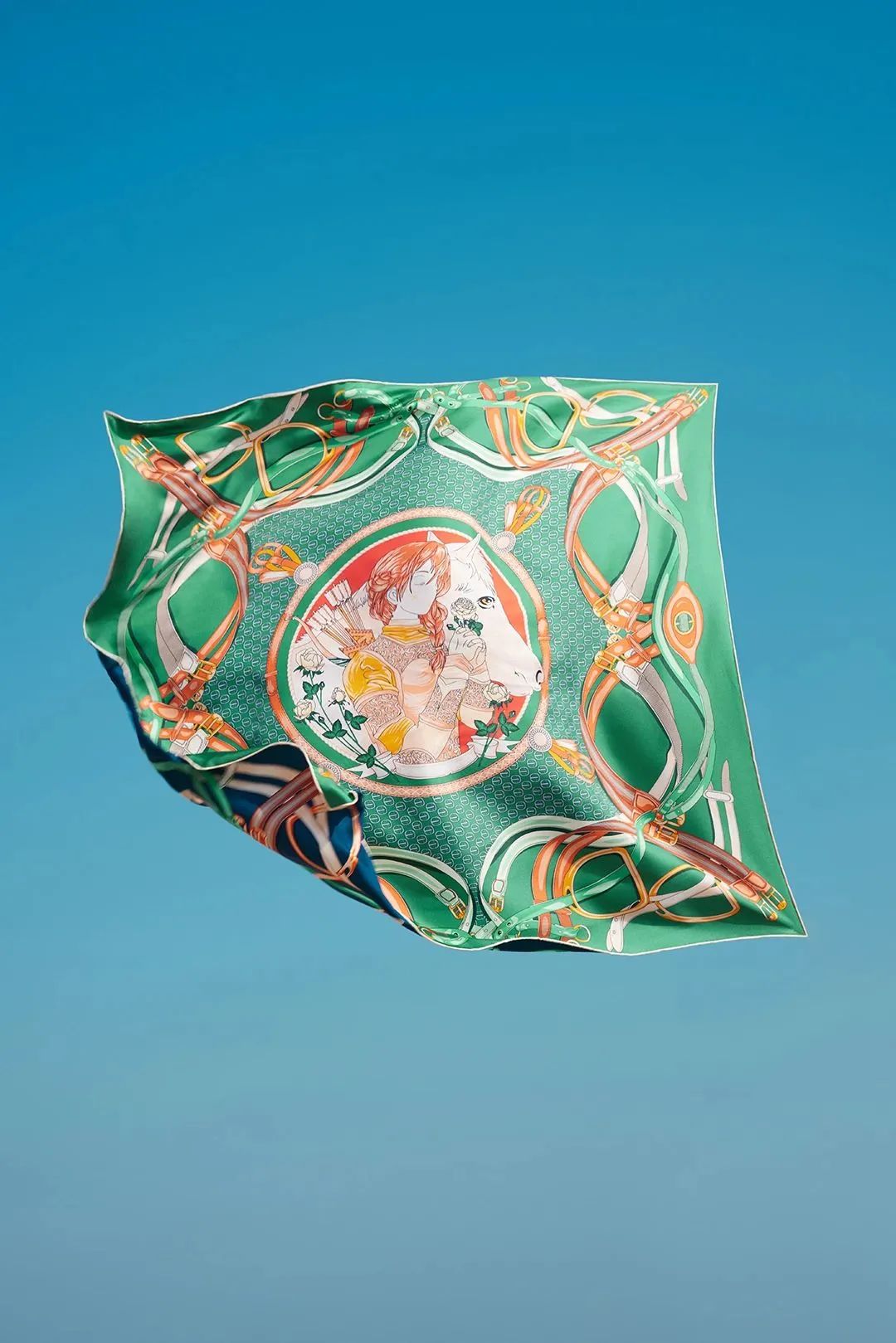 桑蚕丝印花方巾 / 蓝绿印花 / H94W05