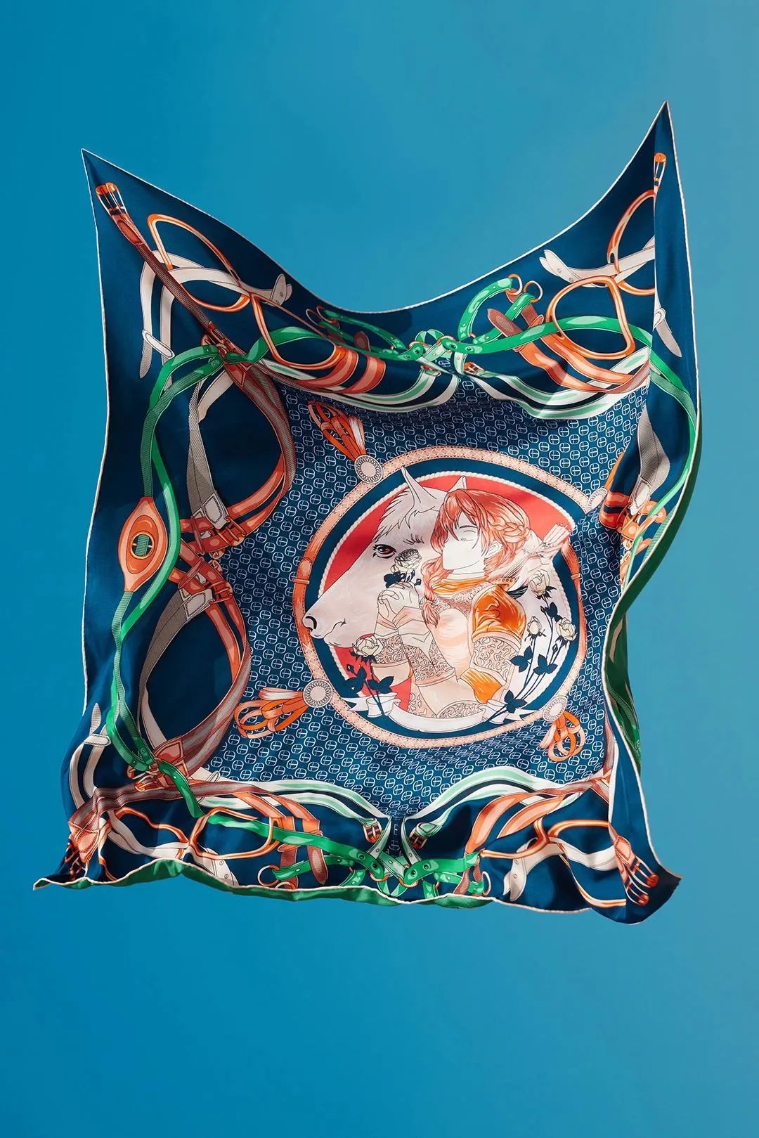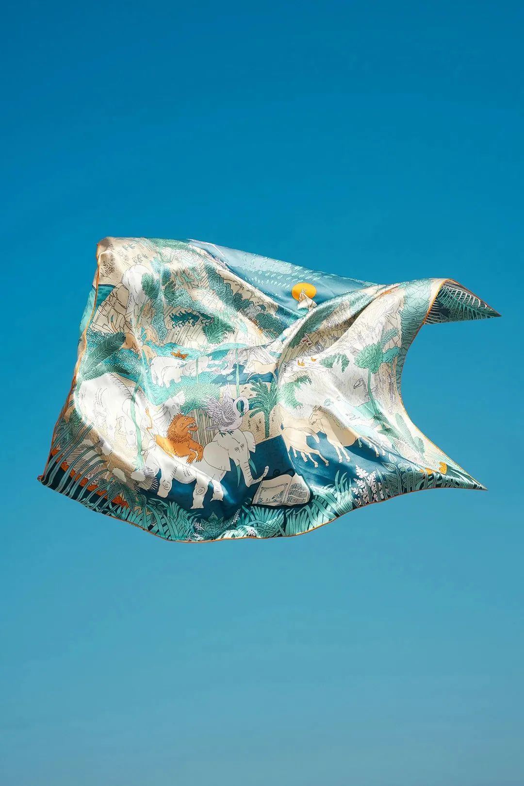 桑蚕丝印花方巾 / 动物世界 / H94W03