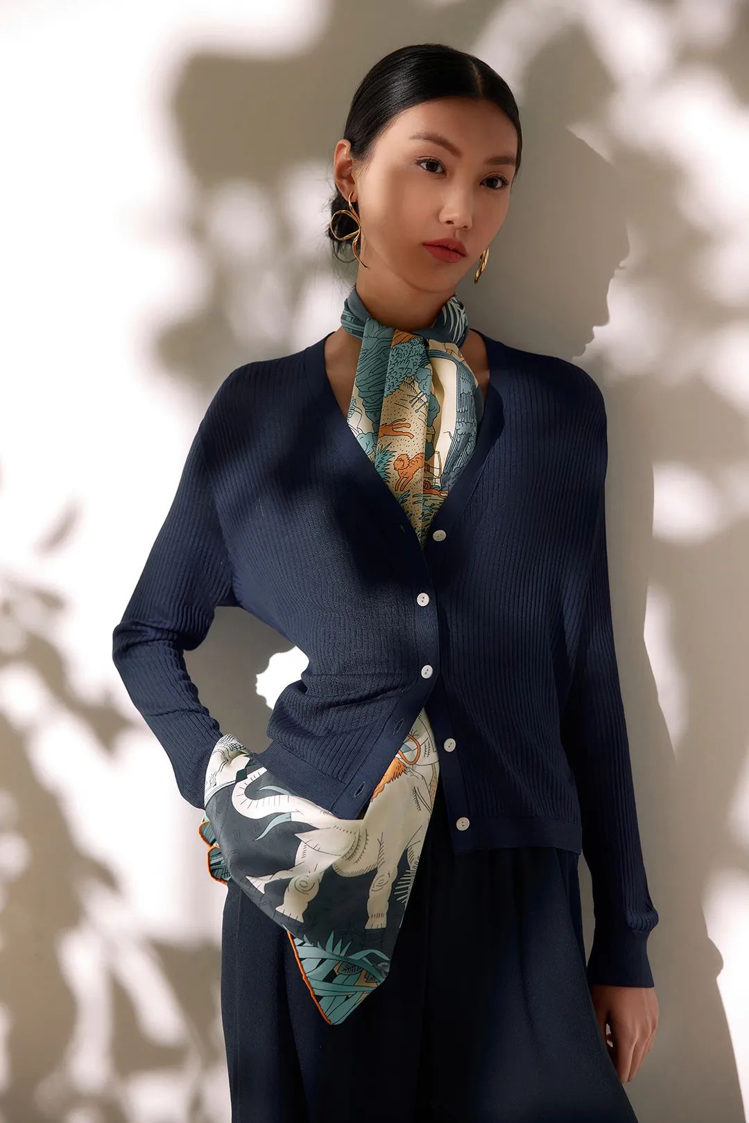 再巧妙地穿进开衫里,形成独特的造型搭配