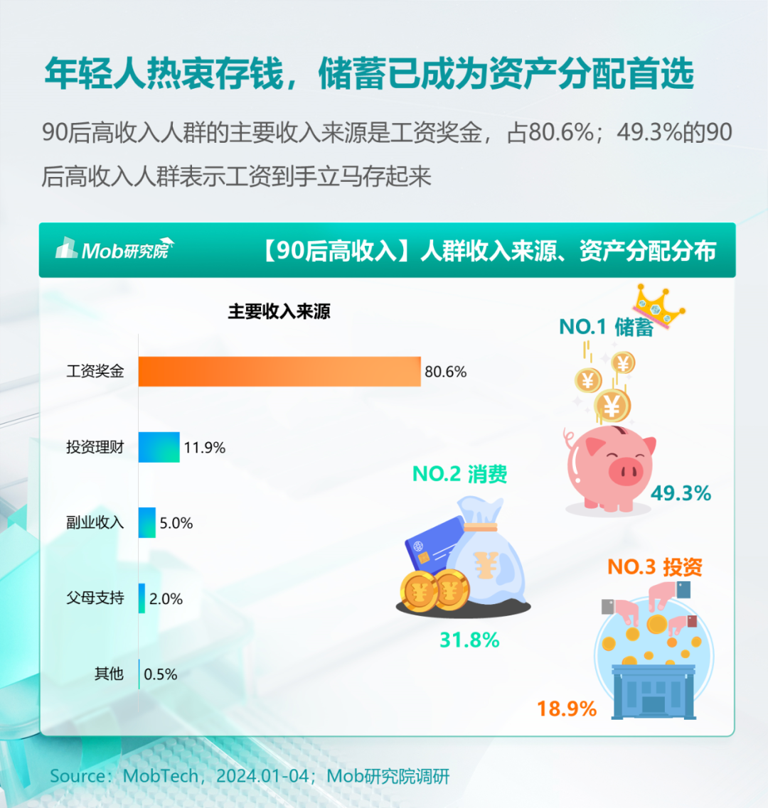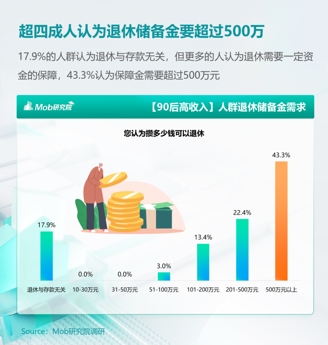 他们爱用信用卡消费,攒钱上也同样精明。他们认为攒够了多少钱才能退休?会用多少钱进行投资,爱投哪些品类,投资上又有哪些痛点呢?跟着Mob研究院《2024年『90后高收入』人群洞察报告》一起来了解。