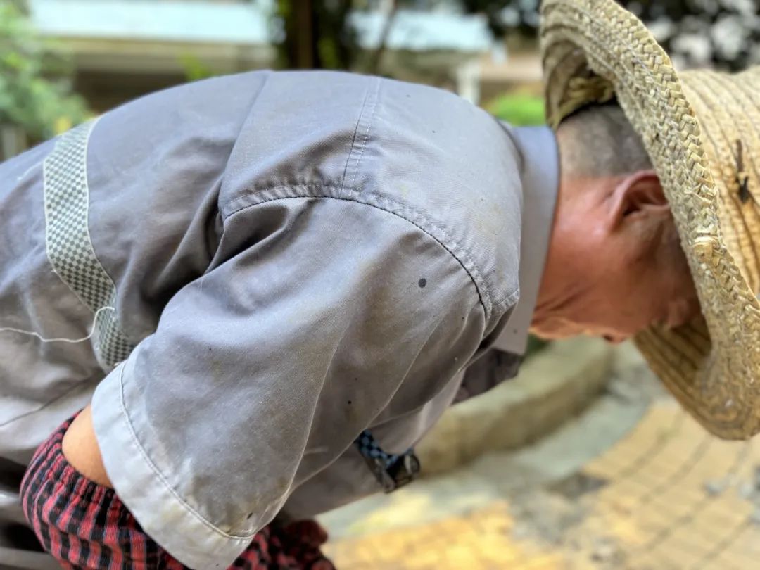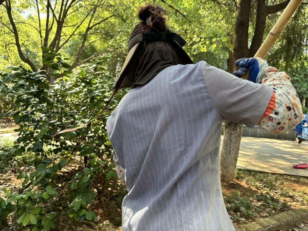 虽是清晨,但气温上升很快,此时强烈的阳光也有点惹人恼,保洁员们纷纷戴起了帽子。反反复复的俯身弯腰清洁,不一会儿,头发就被汗水打湿,贴在脸颊上,后背的衣衫也已被汗水浸透。他们将自己的身姿低进尘埃里,全力付出,用汗水绽开了美丽的花。正是因为他们不拒脏污,才换来了园区的洁净清爽。