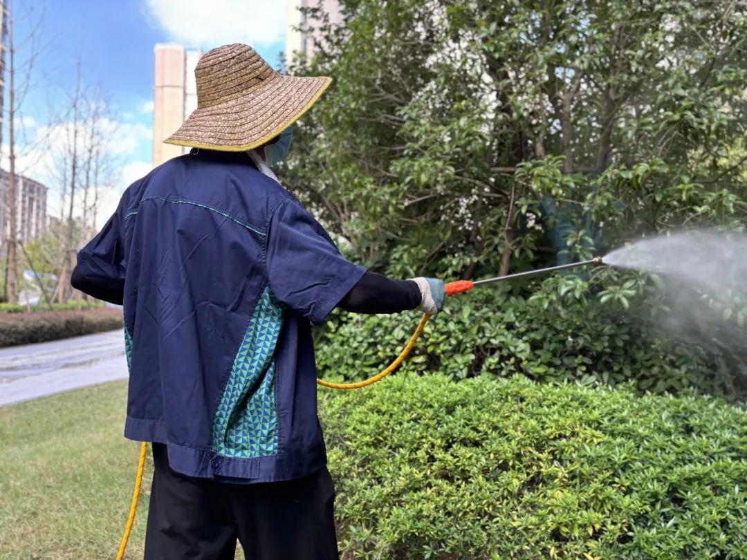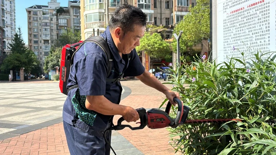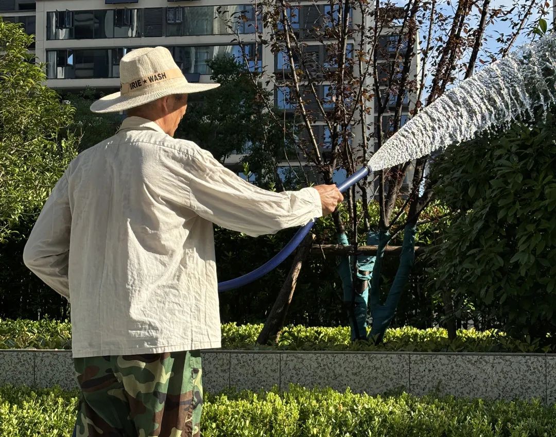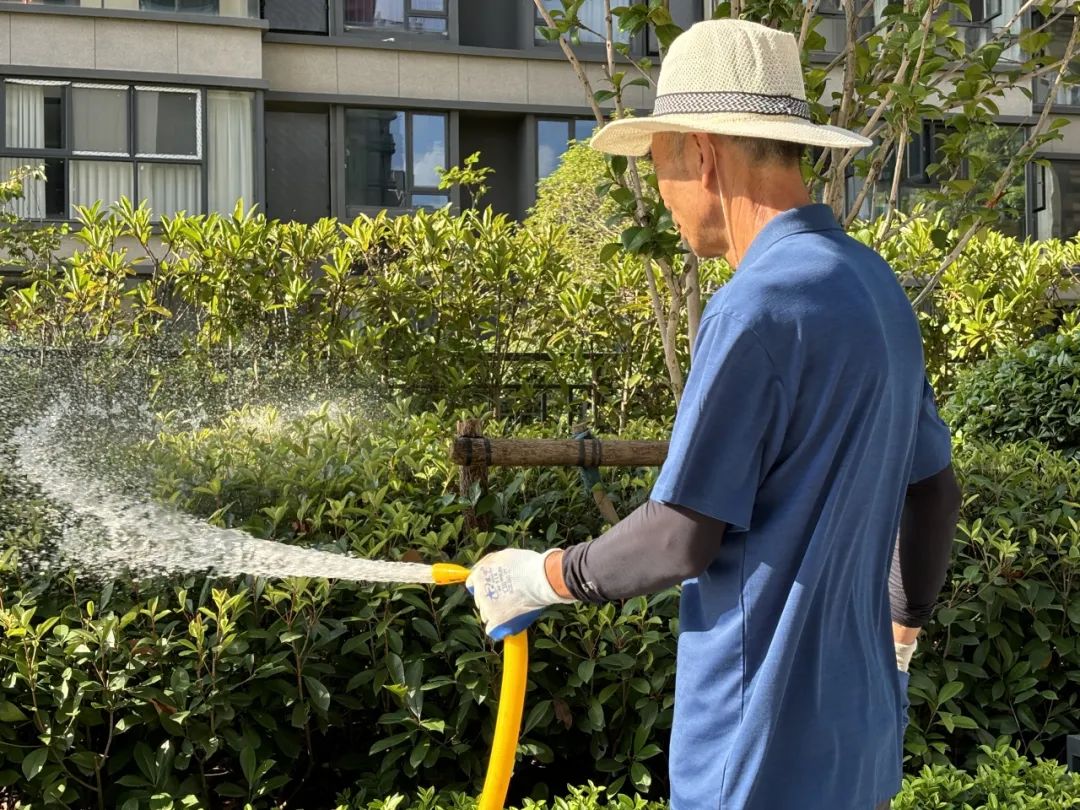 “桃红复含宿雨,柳绿更带朝烟”,园区四季的美景皆离不开绿化师傅那双灵巧的手。夏日草木生长旺盛,需水量大,绿化师傅每天都要避开高温时段,选择在清晨和傍晚给绿化浇水。