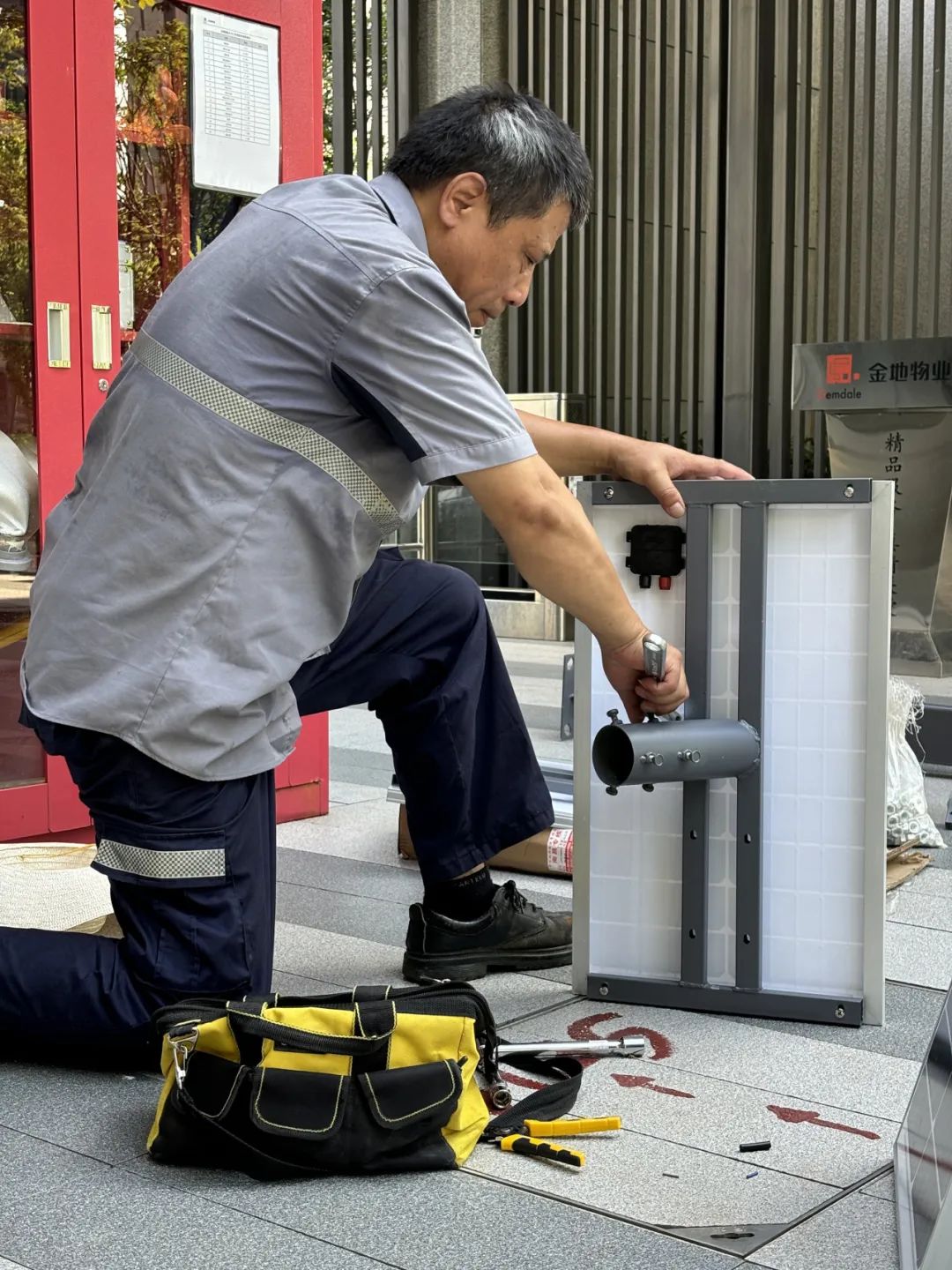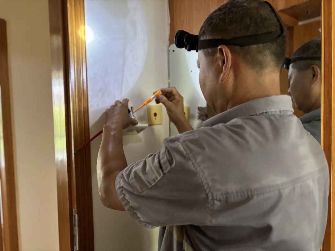 路面维修,护栏翻新,加装晾衣绳,园区亮化改造……园区各种品质提升改造也离不开工程人员的付出。在一些交付年限久的项目,供水管道、排污管道、电路老化问题较多。工程人员就像“救火队”,不是在抢修现场,就是在赶往抢修现场的路上。