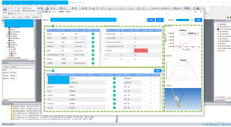 1)与HFSS、Saber、ADS及所内自研工具集成,可通过工具端插件直接上传模型到仿真模型库管理系统中。
