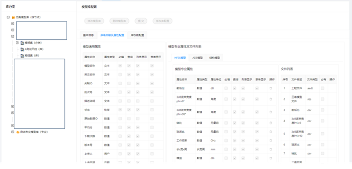由于不同模型所包含的参数及文件不一致,系统提供灵活的模型库配置功能,用户可自定义模型的参数属性、模型文件及模型权限。