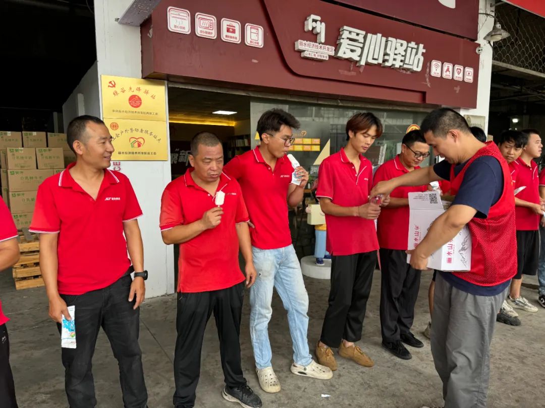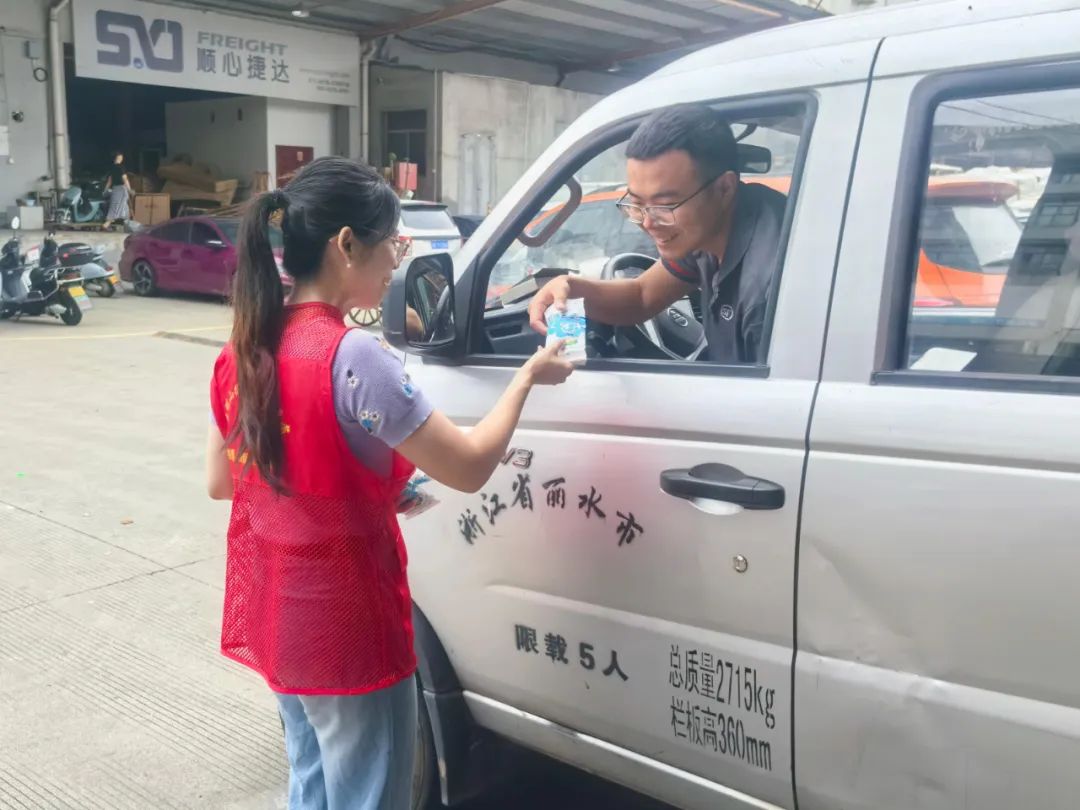 活动启动后,丽水经开区总工会的志愿者团队前往丽水多个物流、快递站点、中转中心等,为新业态劳动者送上夏日消暑物资。