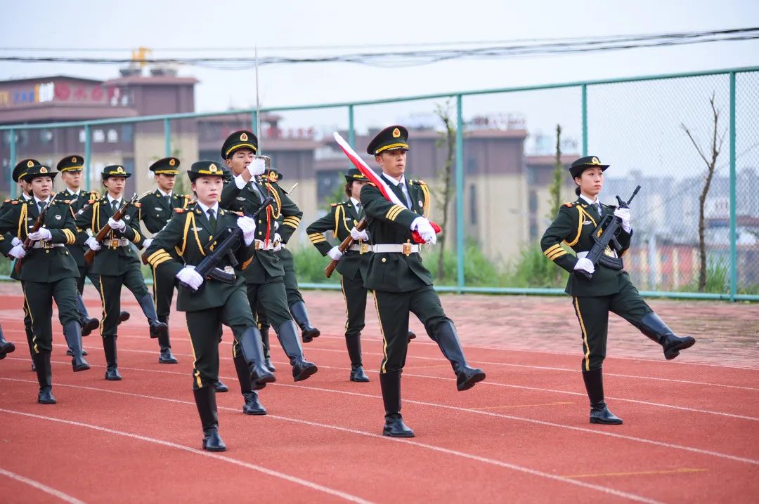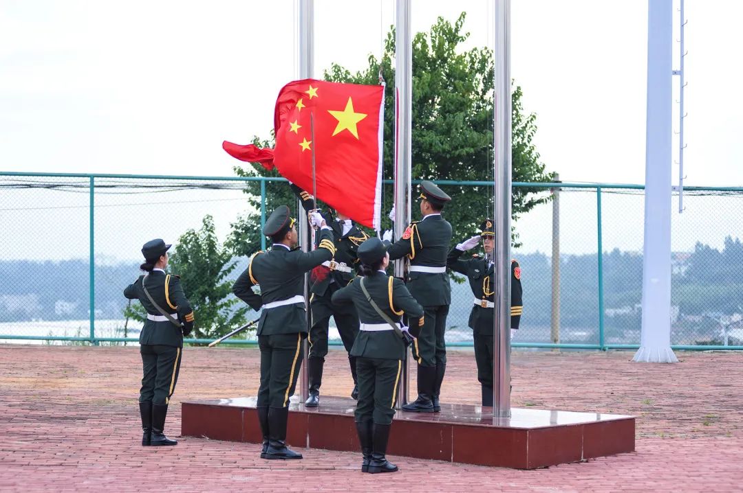 国旗护卫队迈着整齐坚定的步伐,护卫国旗步入升旗台。伴随雄壮激昂的国歌,鲜艳的五星红旗冉冉升起。