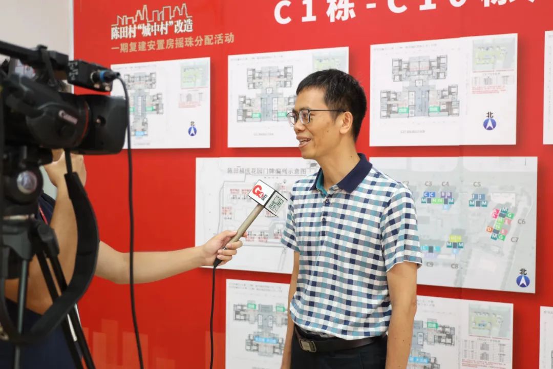 陈田村“城中村”改造项目一期复建安置房,作为陈田村首批即将大规模交付的组团,取名为“陈田福庆花园”,此次将一举回迁10栋住宅,1393套。目前整个小区的建设日趋完善,摇珠当天,部分准业主与来访媒体也进行了实地参观。