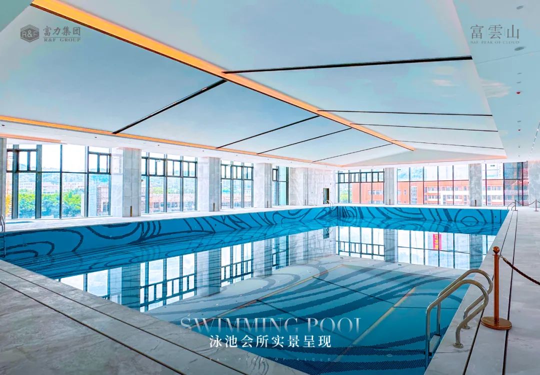 云山大城兑现的配套远不止于此,3400㎡中央会所已经落成,目前作为营销中心使用,未来将改造成涵盖室内羽毛球场、24h时尚健身室、会客厅的私属会所。三楼的30m×17.5m室内山景恒温泳池已实景呈现,其建造规格可谓白云之首。
