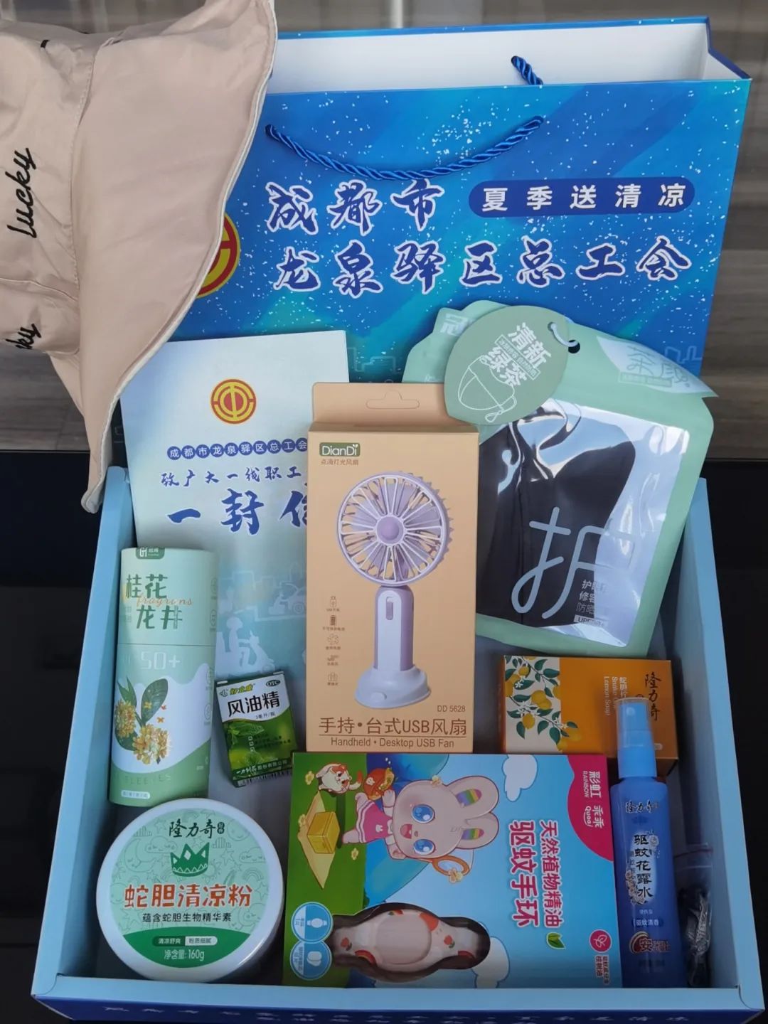 我们有来自龙泉驿区总工会给我们带来的——关心和慰问。