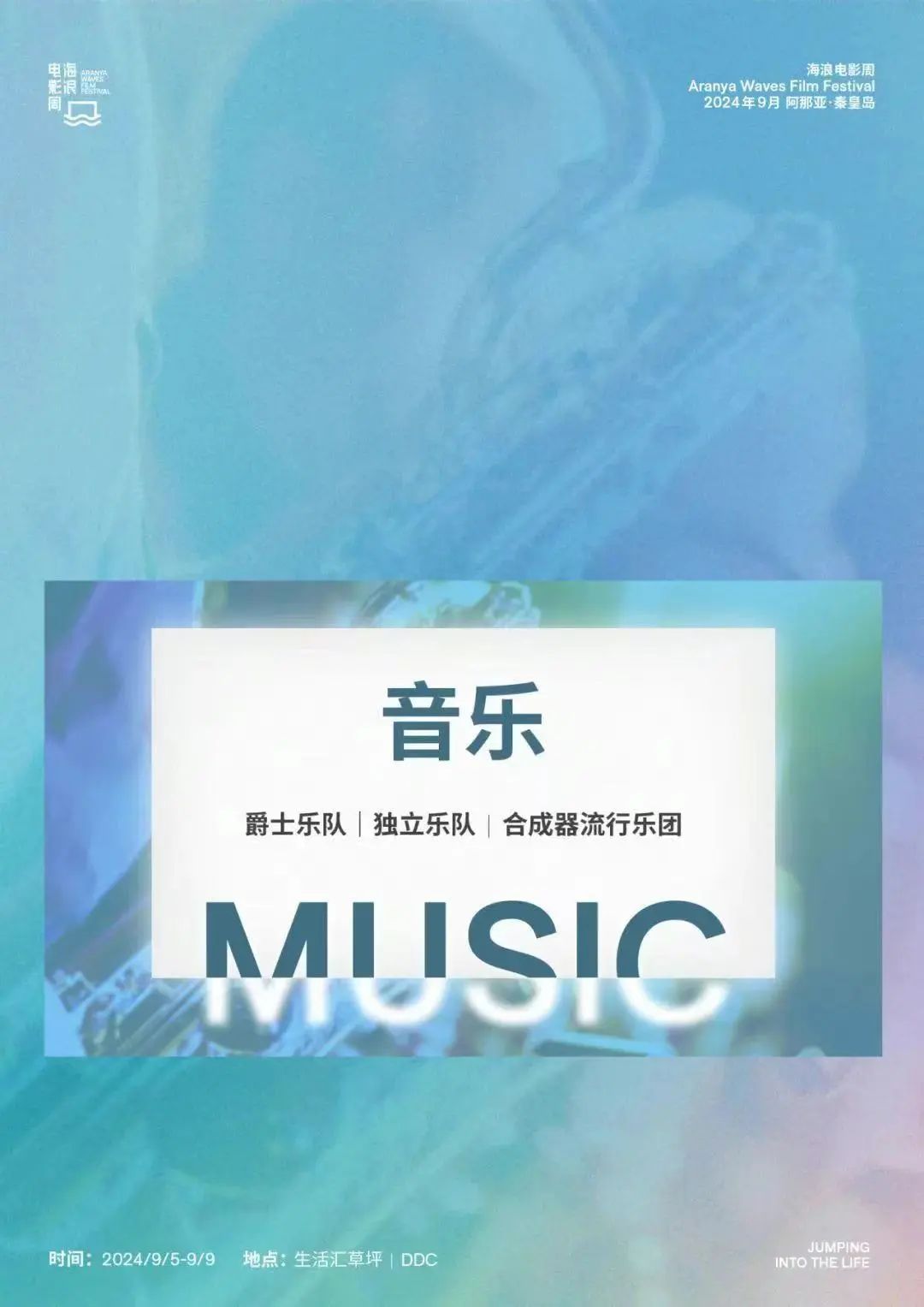 音乐与电影,构成了极致的二维浪漫。海浪电影周期间,在艺文氛围浓厚的阿那亚,怎能少得了音乐现场!我们特意开放了生活汇草坪、DDC车库排练厅等观演场域,邀请一众爵士乐手、独立乐队、合成器流行乐团带来精彩展演,期待心跳与旋律的同频共振,为每个人留下独特的海浪记忆。