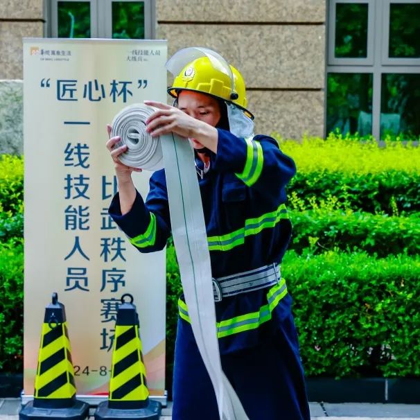 秩序维护关系到业主的安全,守护园区是秩序员义不容辞的责任。赛场上,他们整齐划一的动作、果敢有力的步伐,展示了万象服务的飒爽英姿;换上消防战斗服,他们抛出水带、接连枪头、收卷水带,整套动作一气呵成。他们比速度、比耐力、比默契、比技能,在技能竞技的同时提升专业服务能力。