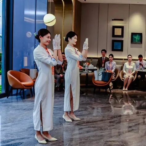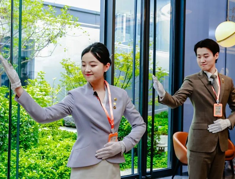 内塑素质,外塑形象。案场服务人员精心地展示展示了迎宾、指引、上水、续水、送宾等系列服务,话术娓娓道来,端、拿、倒、送,从心理上关心客户,从细节处打动客户,把每一个细节都诠释成闪耀的艺术,让客户感受到卓越非凡的尊贵体验。