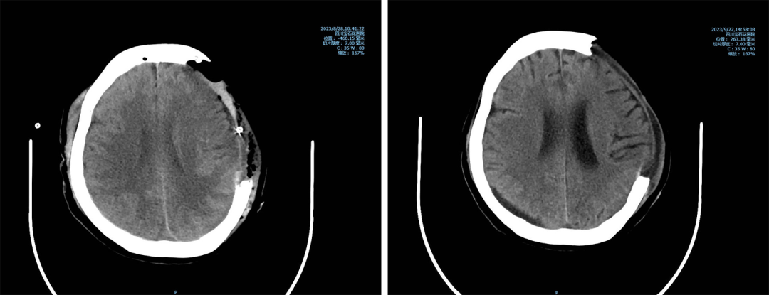 第一次术后脑疝解除,脑内血肿清除,去骨瓣减压成功