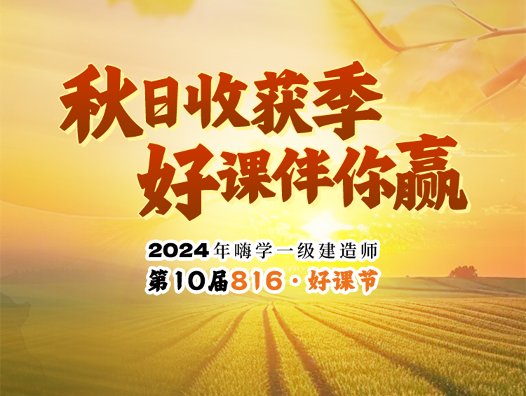 为了帮助同学们顺利冲刺,以最好的状态迎接24天之后的挑战,嗨学网一建项目第十届好课节来啦!8月12日-8月16日,秋日收货季,好课伴你赢,让我们一起冲刺!