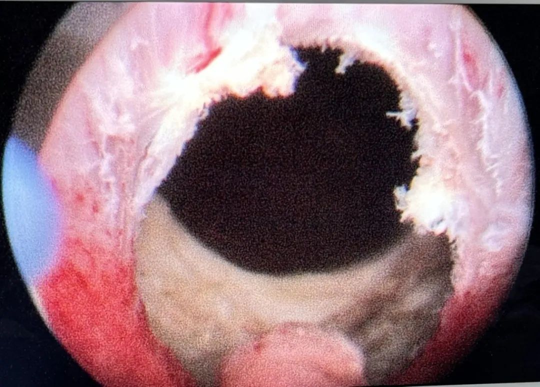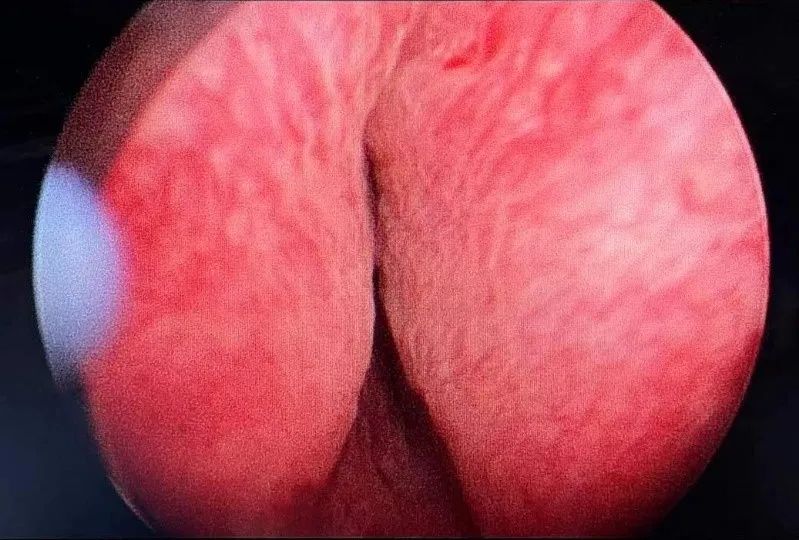 ▲术前,增生的前列腺使尿道狭窄成一条缝