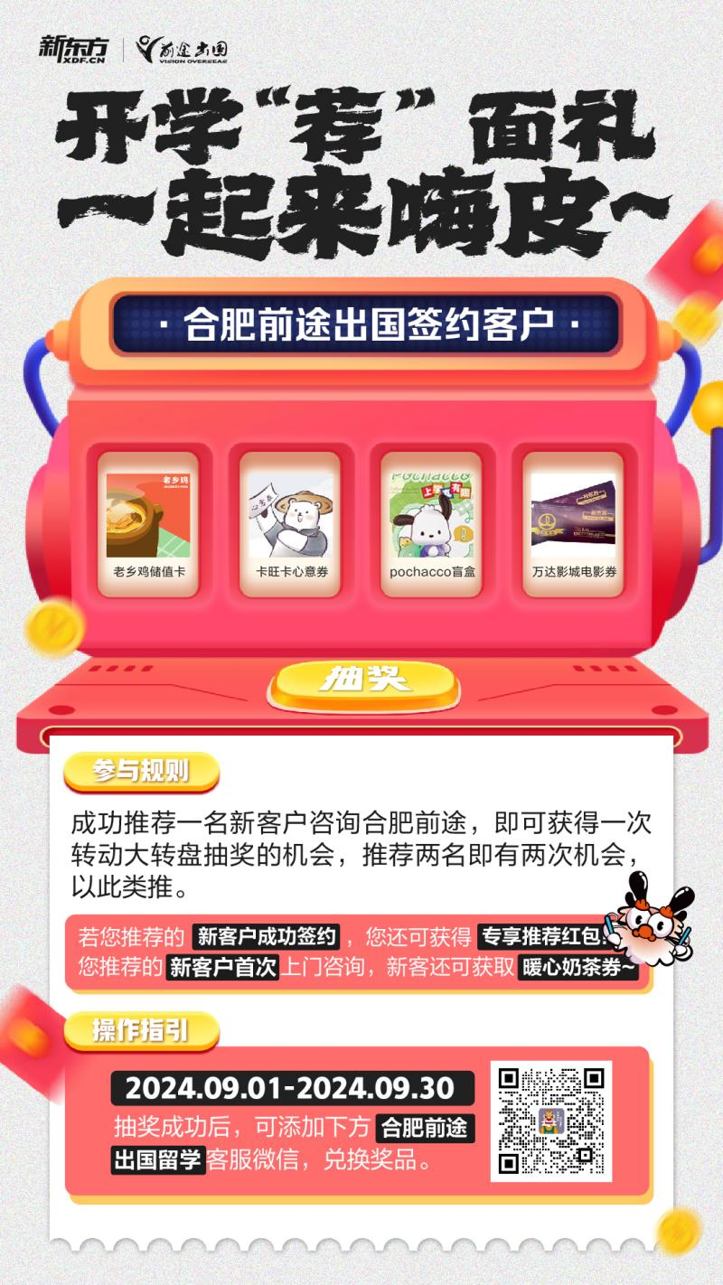 开学推荐亲朋来咨询,合肥前途有“荐”面礼相送~