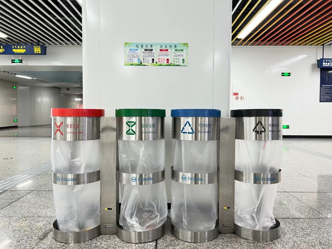 这是为了提醒大家注意垃圾分类, 呼和浩特地铁各站站厅、站台均摆放有可回收物、有害垃圾、厨余垃圾及其他垃圾四个垃圾桶,目的是便于市民乘客根据标志类别投放生活垃圾,养成垃圾分类投放的好习惯。