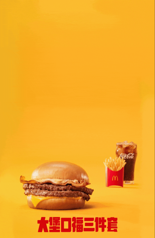 *大堡口福三件套仅需¥22.9是指飞碟鸡排堡、双层脆鸡堡、培根芝士双牛堡任意一款汉堡搭配薯条(中)和中可口可乐(1杯)为22.9元。食品及包装以实物为准,图片仅供参考。上述产品自2024年8月26日起至2024年10月7日,仅在全国部分餐厅适用(不含港澳台地区餐厅,不含交通枢纽、服务区、旅游景区等特殊餐厅),具体以店内公示为准。活动渠道:仅限麦当劳App及麦当劳微信/支付宝小程序的到店取餐渠道、自助点餐机、餐厅柜台。以上组合仅限周一至周五早餐时段后供应,早餐供应时间以餐厅实际为准,至上午10:30结束。通过麦乐送送餐服务、第三方外送平台、电商平台等渠道点餐的,优惠活动参与情况以各自渠道的图示宣传为准。除推广产品外,其他物品不在售卖范围。不与其他优惠同享。“Coca-Cola”是可口可乐公司的商标。