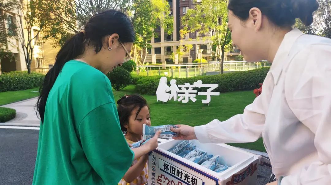 作为主角的老冰棍“扬言”要给山城降降火,小管家们自然主打一个配合,身着海魂衫,佩戴红领巾,穿梭在园区,沉浸式还原80、90年代的小商小贩走街串巷吆喝着卖冰棍的场景。但不同的是,这份童年的老冰棍,只送不卖。