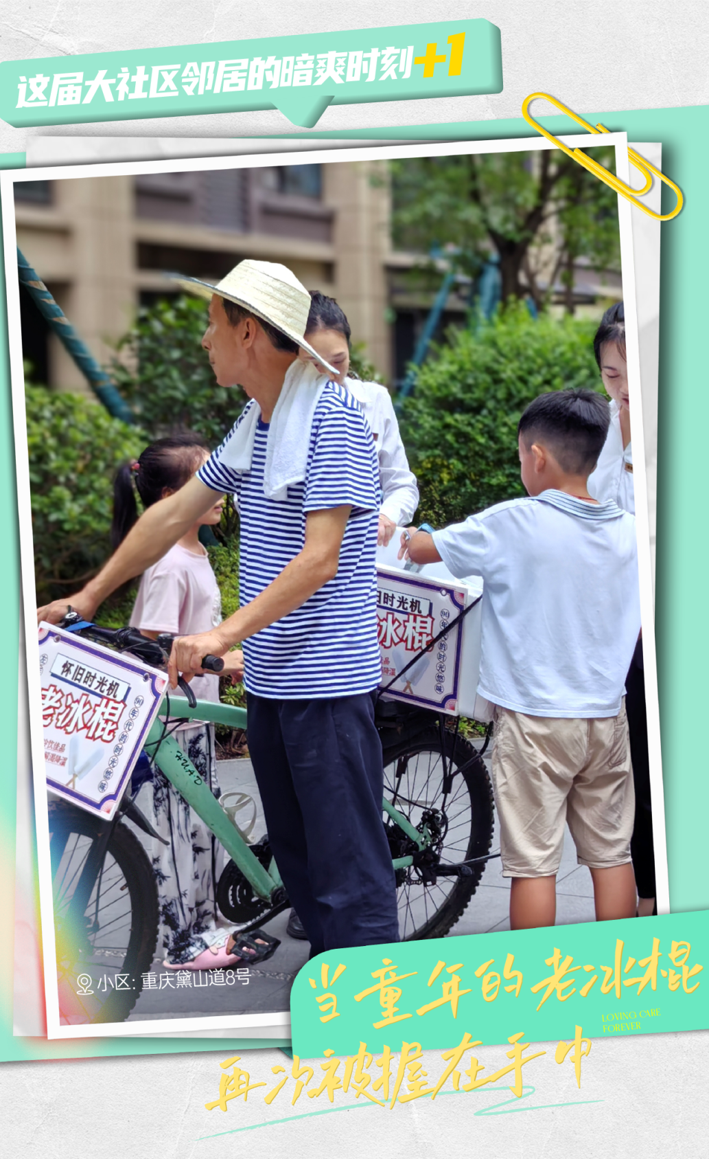 面对超长待机的40℃高温天气,一场怀旧主题的“清凉快闪”风靡了重庆世界城、黛山道8号、集美嘉悦等小区。