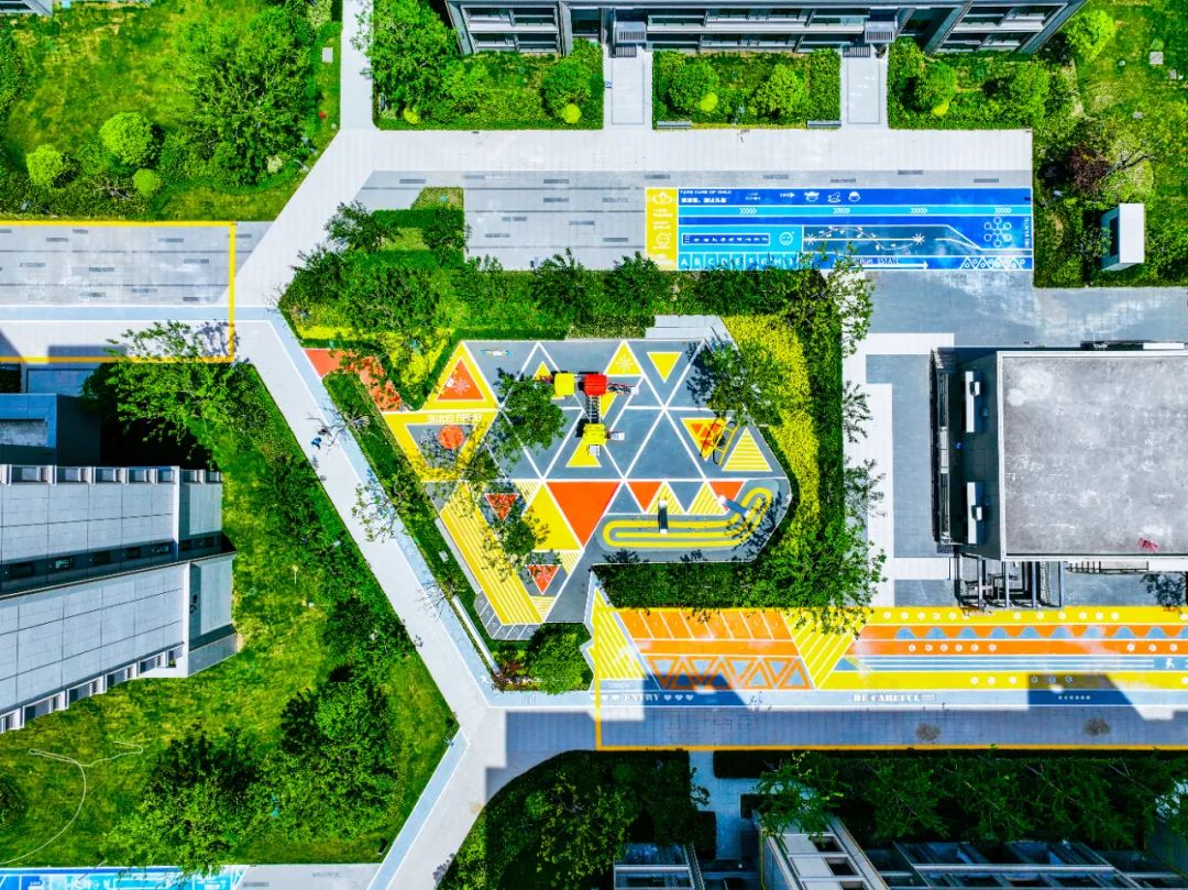 此外,项目还配置了一条活力环跑道,以此串联起各建筑组团区域及园区内其他活动场景。无论是孩子、青年或长者,都可依据自己的居住、活动区域,选择适合自己的运动距离。在慢跑结束后,亦可与在其他区域活动的家人顺利汇合,便捷归家。