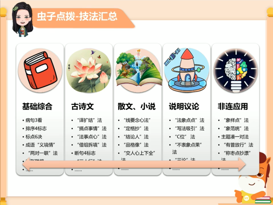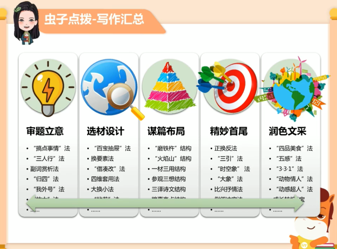 同时,还额外赠送【70个晨读作文和800篇优秀范文】,帮助孩子解决没素材、没思路、结构乱等各类常见写作难题!本次小学训练营的授课老师是高途资深主讲白马,他不仅曾任CCTV《中国创业楷模》节目主持人,也是高途2020年度优秀教师。他通过幽默有趣的讲课方式,传授专业的写作技巧,帮助很多孩子逃离写作困境!初中训练营主讲为高途资深主讲老师赵颖、白杨等,老师们梳理了小初语文学习的差异点,并重点讲解了初中阅读的五大故事原型及写作技法。老师们指出,很多家长不知道,孩子不是讨厌写作,他们只是还没有掌握逻辑和技巧,乱写一通之后的结局就是“被批评”“效果差”,没有正反馈,所以他们讨厌的其实是写不出作文的挫败感。如果这些问题不及时解决,久而久之,就会错过最该在写作上快乐的年级。但只要慢慢纠正以上“十大问题”,传授相应的解决方法,一步步引导孩子获得“成就感”,就能让孩子最终爱上写作,受益终生!在训练营中,白马老师会针对孩子写作中常见的难题和困扰,系统地讲解科学的写作方法——4类素材+7大方法+36句法,激发孩子不同视角的想象力和创造力!通过学习写作方法和技巧培养人文创作能力,摆脱教条式的写作思路,让孩子从写作没有思路、文字平淡,变成角度新颖、下笔如有神,文采跃然纸上。同一个事情,不一样的写作思路,通过使用白马老师的“物我反差法+戏剧句法+颜色联系法”,作文瞬间告别千篇一律,新意十足,让人眼前一亮!初中的老师们,便会重点教大家各类题型的答题公式,让初中孩子在有限的时间内通过更高效的学习方式获取知识。语文一定要改变学习方法,只靠背诵是不行的。语文学习的要求、考试的要求都是变化的,如果跟不上变化,很容易就会被甩在后面。很多家长担心没效果,没关系,课程可以反复听,资料可以反复看,是永久赠送大家的。课程中都是最为经典的例题,答题结构清晰明了。为了保障学习效果,我们还配备了答疑服务+学习交流群,助理孩子提髙写作思维能力,并且在课后给孩子进行个性化的答疑,督促孩子学习,还会对优秀成果进行展示表彰!声明:本文为广告推广信息。如内容有违规、侵权请联系我们,我们将及时处理。