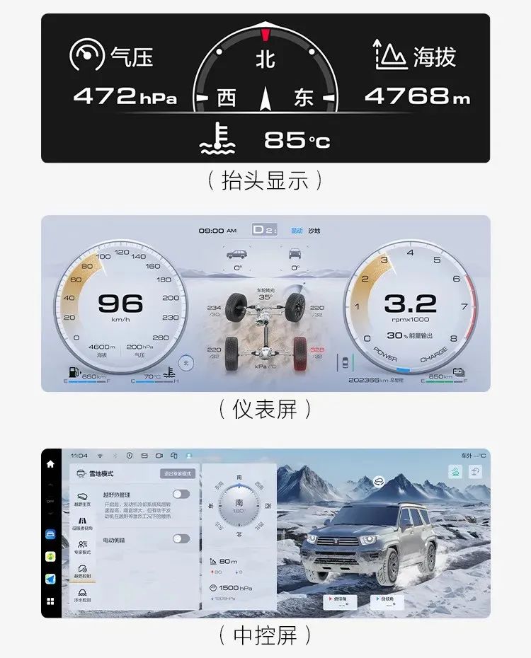 近期,坦克 700/400 Hi4-T 相继迎来智能化升级。中科创达全资子公司 Rightware 旗下的 HMI 设计开发工具链产品 Kanzi One支持多屏联动为驾驶者精心打造出了沉浸式的 3D 越野新视界。坦克 700/400 Hi4-T 全新的三屏联动功能非常惊艳,当驾驶者切换至越野模式时,抬头显示、仪表以及中控屏幕会自动弹出越野显示信息,并且还新增了 “海拔、气压” 以及 “胎温胎压” 等数据显示,使驾驶者能够更加准确地掌握车辆状态和越野环境,为越野之旅增添更多的安全与便利。凭借Kanzi One 领先的3D HMI渲染技术,坦克 700/400 Hi4-T实现了全新的3D越野功能。当驾驶者根据路况或者个人偏好切换驾驶模式时,中控屏幕中的3D车模和背景可以模拟雪地、沙地、泥地、山地、岩石、溯溪等真实的驾驶场景,为驾驶者带来身临其境的沉浸式越野。此外,驾驶者还可以切换到专家模式,沉浸式查看差速锁、空气悬架和驱动模式等实时状态,进一步提升了对车辆的掌控感。