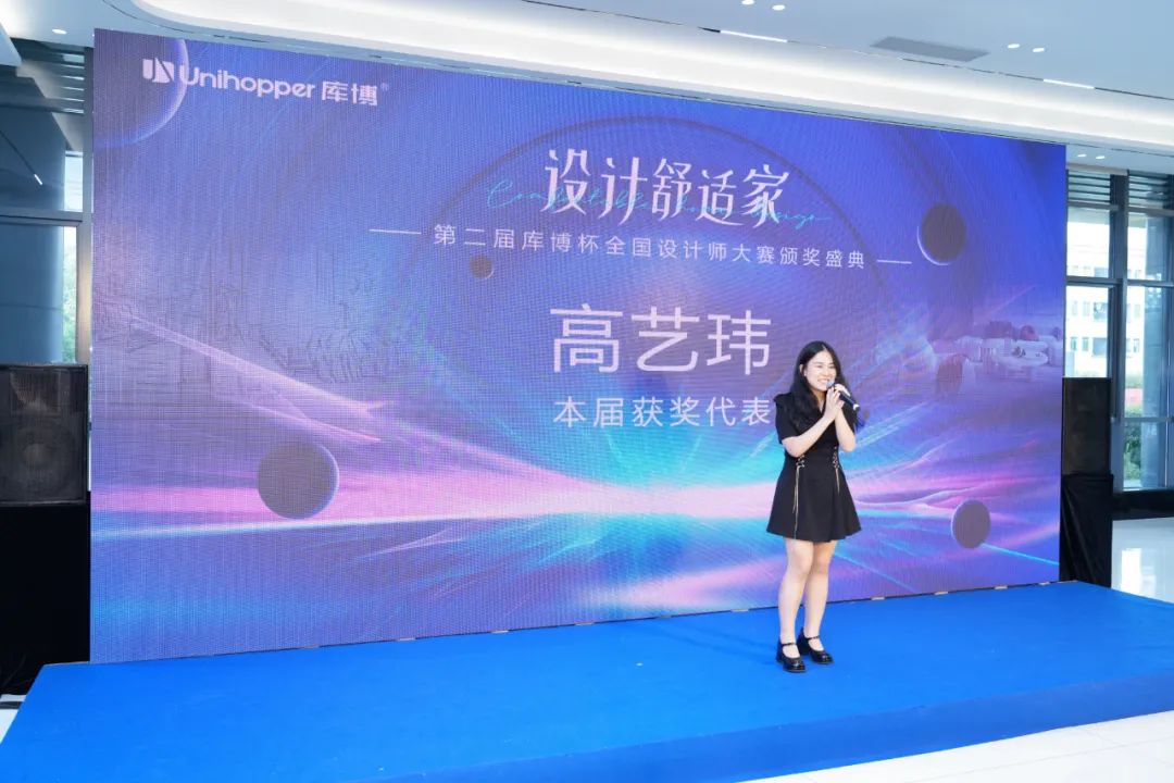 作为两届设计师大赛的总策划人——Unihopper库博集团营销中心总经理胡海军先生对本届“库博杯”全国设计师大赛进行了总结发言。胡海军总经理提到:“第二届库博杯全国设计师大赛自3月29日发起以来,受到行业的广泛关注和设计师的积极响应,大赛不仅为设计师们提供了一个施展才华的舞台,还促进了设计界内的良性竞争与合作,进一步激发了行业的活力与创造力。”