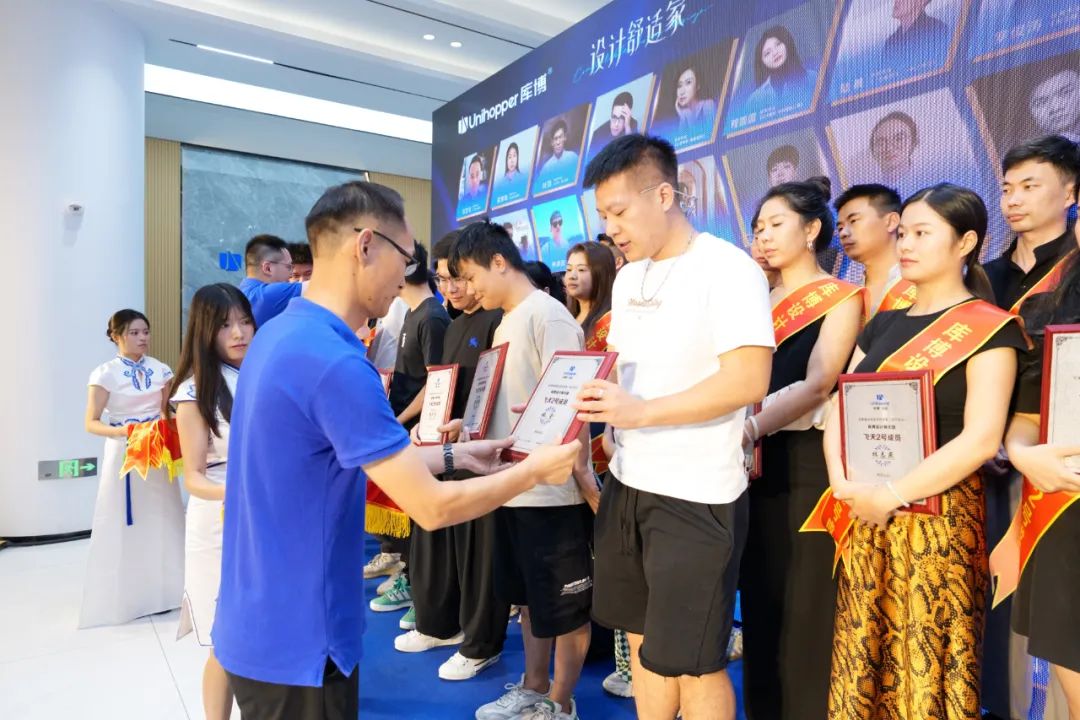 最后,库博集团领导、活动嘉宾为本届获奖设计师们颁发了“库博设计师天团飞天2号成员”的荣誉牌匾,并为他们授予了荣誉绶带。