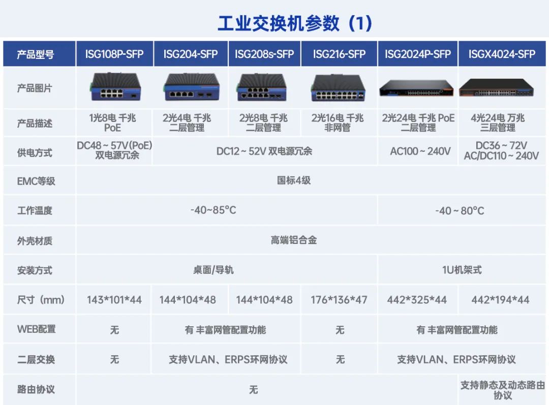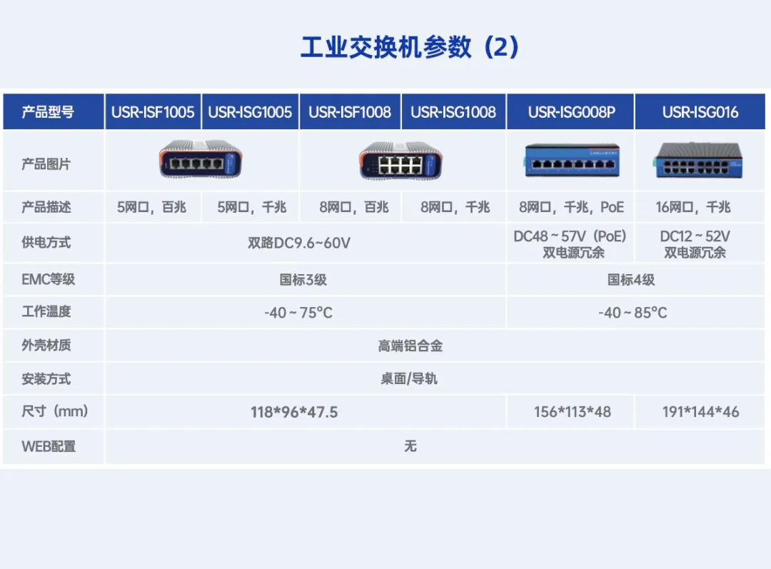 有人工业级交换机提供多样选择,百兆/千兆可选、5/8/16口可选、PoE可选、SFP光口可选、非网管/网管型可选,满足各种工业场景需求!