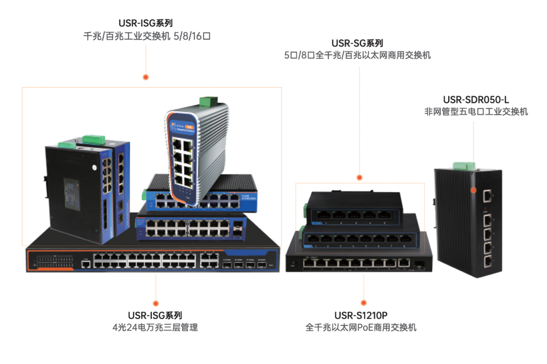 有人物联全面提供各类型工业/商业交换机,产品经久耐用、易于部署,为工业环境、移动运输、企业商用方向提供通信服务,为传统项目实现降本增效!