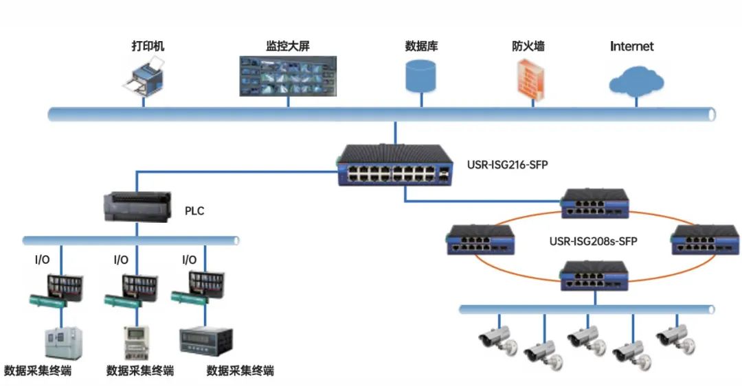 工业交换机主要是用于工业自动化、智能制造、数据中心、安防监控等领域。其主要作用如下: