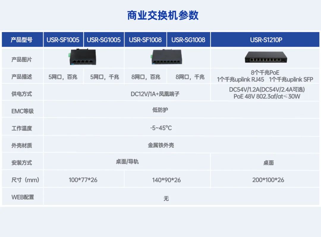 工业交换机具有较高的环境适应性,能够适应高温、低温、湿度大、振动、冲击等恶劣的工业环境;而商业交换机通常只适用于办公室、数据中心等温湿度适宜、环境稳定的场所。